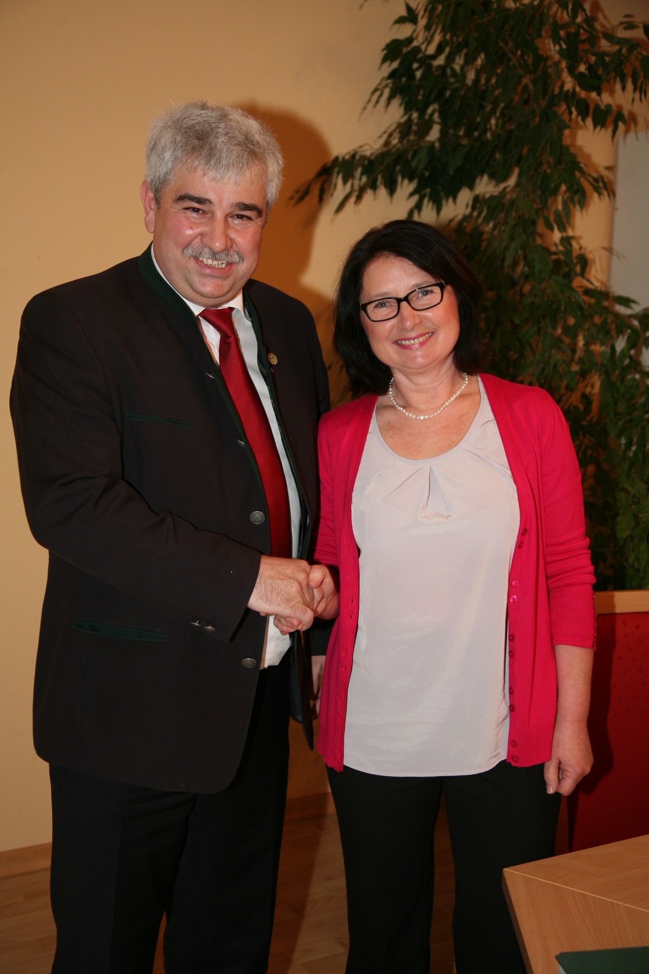 Bgm. Reinhard Breitner bedankt sich bei der Altersvorsitzenden GGR Elfriede Figl für die perfekte Durchführung der konstituierenden Sitzung.