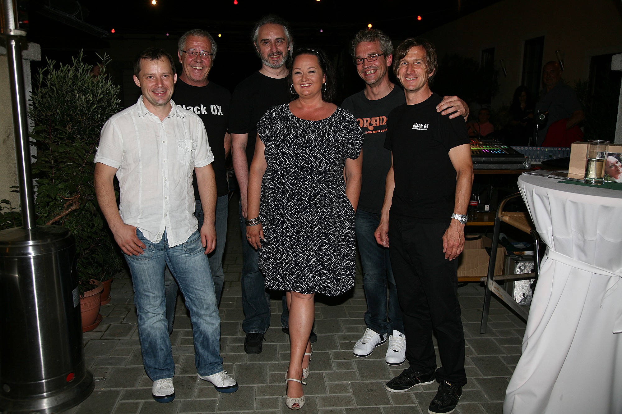 Von links: Christian Einheller (Percussion), Franz Mader (Eventmanager), Gwenael Damman (Bass), Tini Kainrath (vocal), Hartmut Kamm (Git., Keyboard) und Walter Kahri (Gastronom) nach dem Konzert