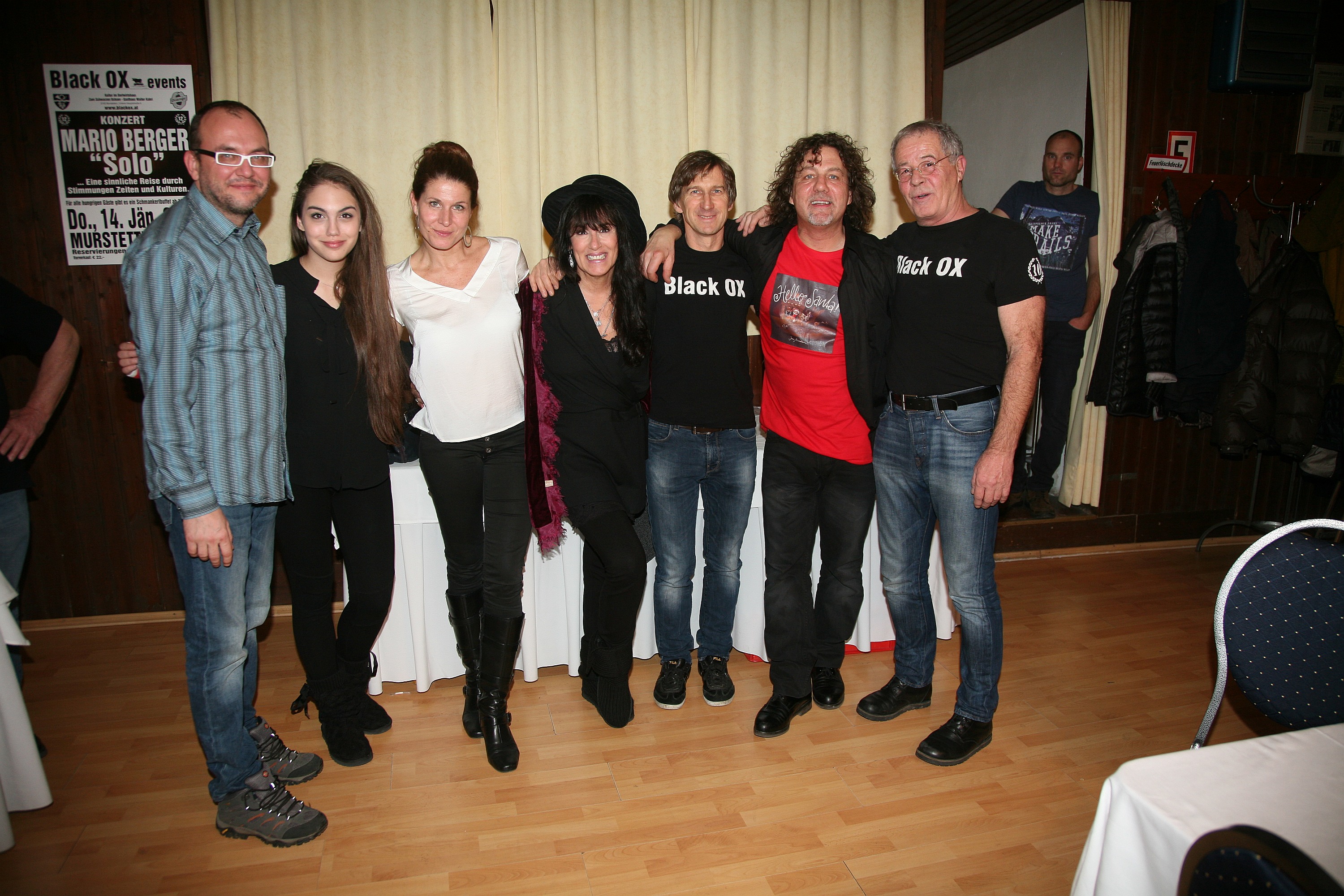 Nach dem Konzert, von links: Markus Marageter (Keyboard), Kate Cutic (Background), Uschi Hollauf (Background), Joni Madden (Vocal), Walter Kahri, Andy Cutic (Guitar) und Franz Mader, im Hintergrund rechts Martin Jetschko