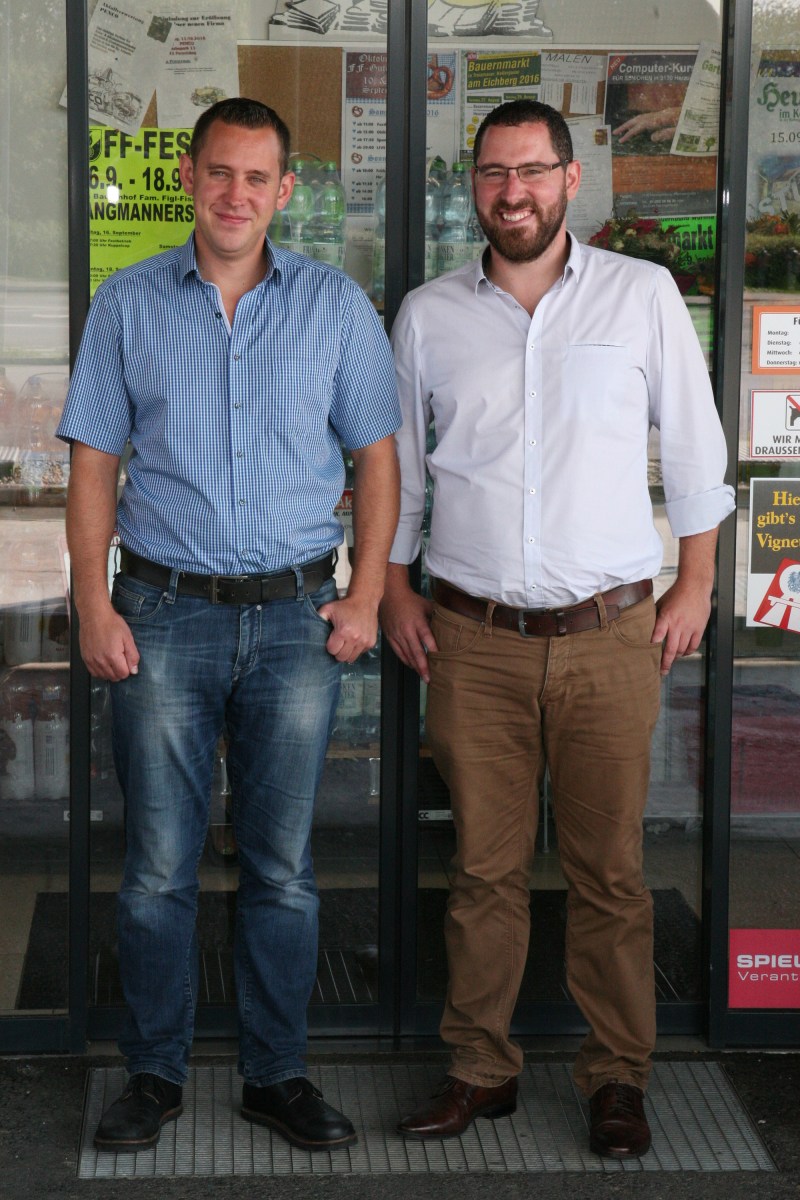 hzg_38_lla_5 25. September 2016 von peternuss ← Vorheriges Bild Nächstes Bild → Thomas und Christian Bauer (von links) vor ihrem Nahversorgungsbetrieb
