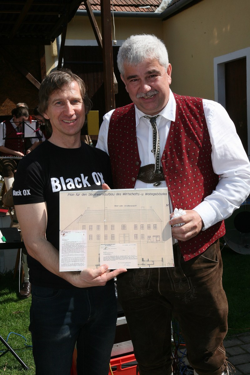 hzg_15_walter_kahri_50_04 9. April 2017 von peternuss ← Vorheriges Bild Nächstes Bild → Bgm. Reinhard Breitner gratulierte im Namen der Gemeinde und übergab den Einreichungsplan aus den 50er-Jahren.