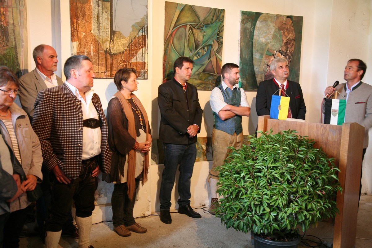 LAbg. Martin Michalitsch (rechts) lobte die Gemeinde Perschling und zeigte sich von den ausgestellten Objekten beeindruckt, von links: Heribert Scheikl, Alois Siedl, Susanne Kraushofer, Vizebürgermeister Franz Erber, Weinbauvereinsobmann Karl Würschinger und Bürgermeister Reinhard Breitner