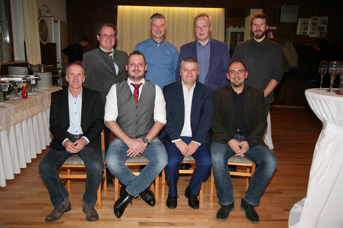 Vorstand und Mannschaftsführer mit Ehrengast Ing. Hans Baumgartner, Gerhard Himsel, Kassierstv. Gerhard Koch und Schriftführer Wolfgang Riedl (stehend von links), Obmannstv. Karl Eigner, Obmann Jürgen Stuphann, Ehrenobmann Franz Peter Nussbaumer und Kassier Christian Erber (sitzend von links).