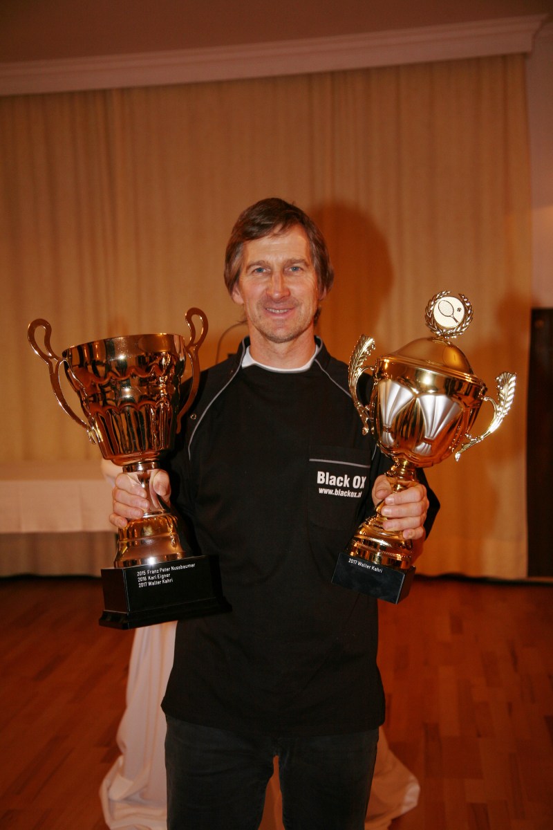 IMG_3759 2. Dezember 2017 von peternuss ← Vorheriges Bild Walter Kahri freut sich über die Wanderpokale für die 1. Plätze sowohl der allgemeinde Clubmeisterschaft wie auch der 50+ Meisterschaft.
