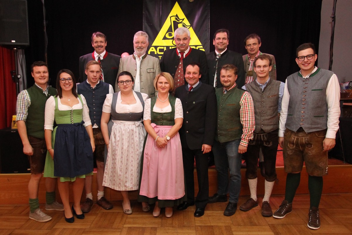 Leitung und Ehrengäste freuen sich auf den Ball. Vorne von links: Simon Kablinger, Sandra Bieder, Manuel Fahrnecker, Gerlinde und Franz Rödl, Alois Vogl, Markus Eder und Simon Schwab; hinten von links: Franz Engelhart, Franz Riegl, Reinhard Breitner, Franz Erber und Franz Buchinger