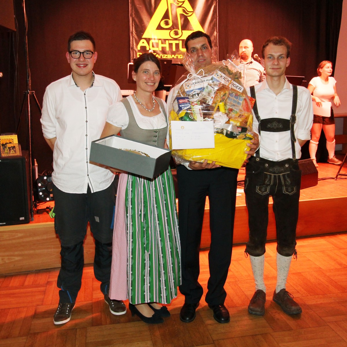hzg_48_lj_70_jahre_ball_10 24. November 2019 von peternuss Nächstes Bild → Das Schätzspiel gewann das Ehepaar Monika und Reinhard Scheriau (Bildmitte) und nahm von Simon Schwab (links) und Markus Eder (rechts) den Preis entgegen