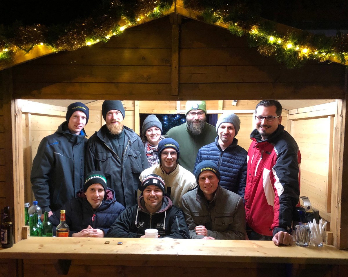 Die Feuerwehr Murstetten freute sich: In der Fahrzeughalle genossen am 22. Dezember ab 17.00 Uhr viele Besucher Glühwein, Punsch, Leberkäse und Käsekrainer, eine kleine Abordnung der Trachtenmusikkapelle Murstetten umrahmte das Ganze mit weihnachtlichen Klängen und das jährliche Feuerwerk verkündete bereits zum 10. Mal die Wintersonnenwende. Vorne von links: Kdt.stv. Matthias Schmidt, Philipp Breitner und Christoph Brandstetter; hinten von links: Manuel Puxbaum, Michael Franz, Valérie Tournié, Andreas Bauer, Markus Kurzbauer, Kdt. Dominik Dorner, Bezirksfeuerwehrarzt Gerald Gudernatsch