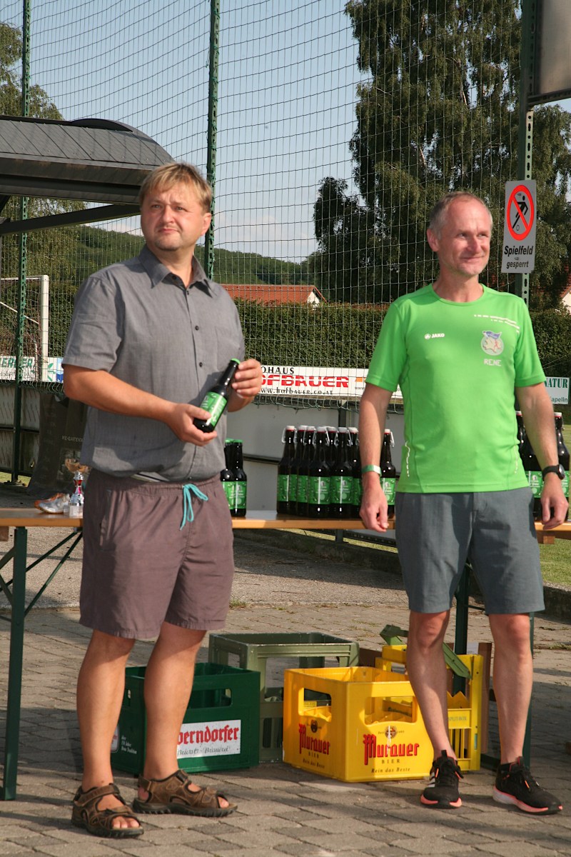 hzg_34_mittelpunktlauf_19_lckap_5 21. August 2021 von peternuss Nächstes Bild → Bgm. Alois Vogl und LC-Obmann Rene Schmied (von links) führten die Ehrungen durch und übergaben je nach Alter der Teilnehmer und Platzierung unterschiedliche Größen des in Perschling von LC-Mitglied Günter Diendorfer gebrauten Bieres „s’Grüne“