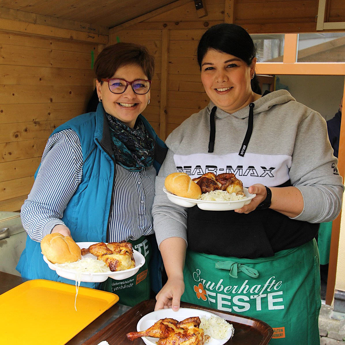 hzg_17_ff_fest_murst_8 25. April 2022 von peternuss ← Vorheriges Bild Nächstes Bild → Erika und Tochter Melanie Breitner gaben die prächtig angerichteten Grillhenderl aus