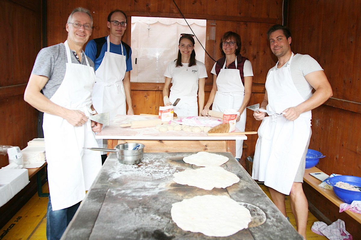 hzg_38_ff_fest_langmdf_11 17. September 2023 von peternuss ← Vorheriges Bild Nächstes Bild → Gerald, Andreas, Michaela und Christine Eder (von links) bereiteten gemeinsam mit Georg Kerschner (rechts) Feuerflecken