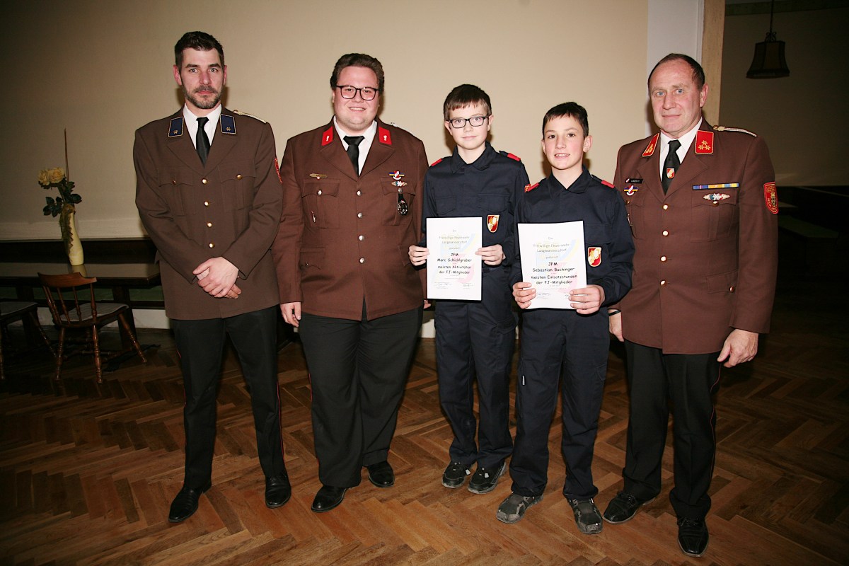hzg_07_mitglvslg_ff_langmannersdorf_1 10. Februar 2024 von peternuss Nächstes Bild → Verwalter Bernhard Bandel, Jugendbetreuer Löschmeister Kevin Luger, Jungfeuerwehrmann Marc Schicklgruber, Jungfeuerwehrmann Sebastian Buchinger und Kommandant Hauptbrandinspektor Peter Luger (von links)