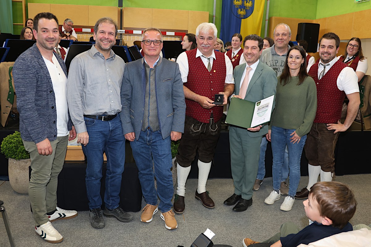 Die beim Frühlingskonzert anwesenden Gemeinderäte mit dem neuen Ehrenringträger, von links: Wolfgang Schildberger, Franz Erber, Vizebgm. Thomas Seyer, Bgm. a. D. Reinhard Breitner, Bgm. Daniel Weis, Manfred Hell, Karin Weissenböck und Philipp Breitner.