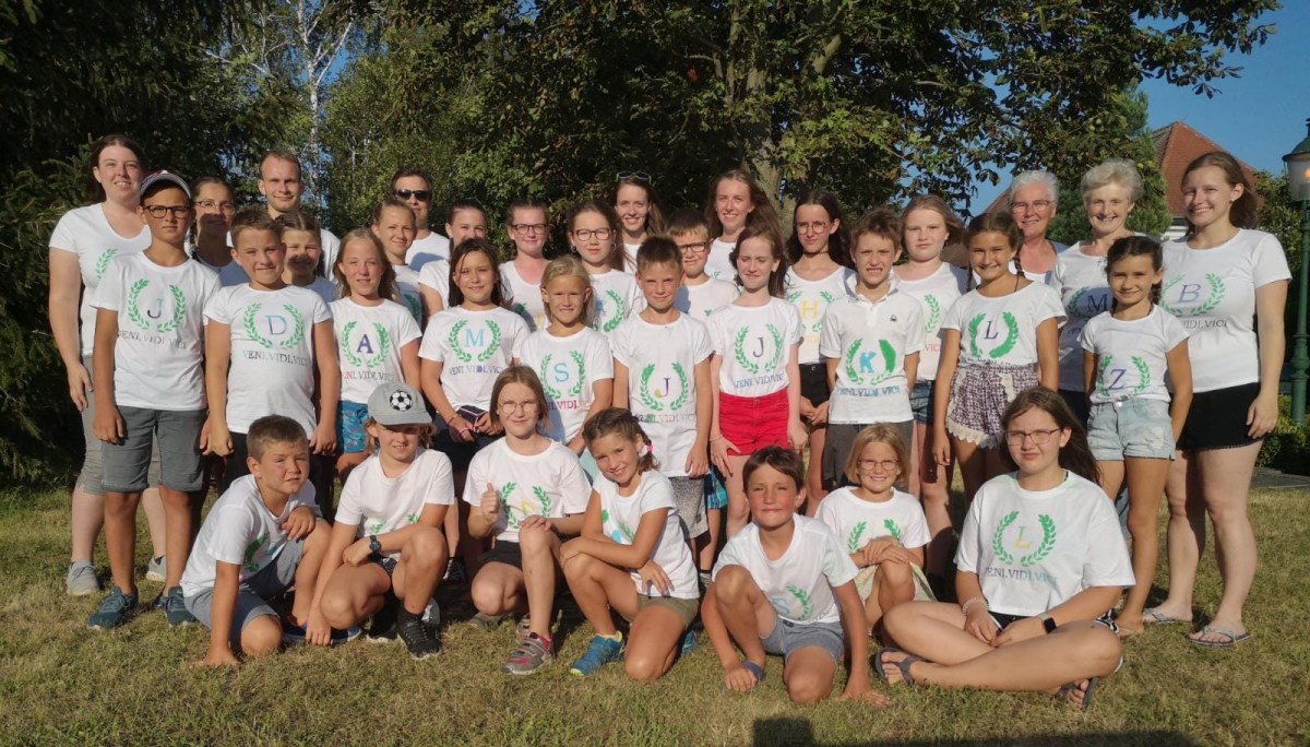 hzg_29_jungscharlager_wk_2 26. Juli 2021 von peternuss Gruppenfoto in neuem Lagerleiberl, auch die Leiter und Leiterinnen sowie auch die Köchinnen Barbara Ackerling und Martha Schauer (hinten, 3. und 2. von rechts) tragen das gemeinsam gestaltete T-Shirt.